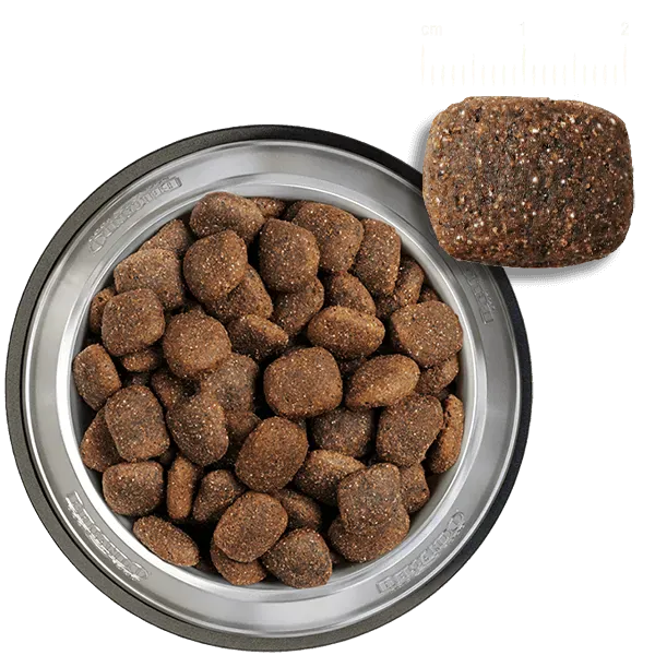 سمك السلمون الطازج (40٪)؛ وجبة السمك من الأسماك البحرية (17٪)؛ القطيفة (16٪)؛ نشا البطاطس؛ دقيق البازلاء؛ العوالق الحيوانية البحرية، مطحونة (كرل، 5٪)؛ زيت السلمون؛ طارد بذور العنب؛ خميرة البيرة، مجففة؛ قرون الخروب، مجففة؛ سمك السلمون، محلل مائيًا؛ بذور الشيا؛ فوسفات ثنائي الكالسيوم؛ الأعشاب، مجففة (الإجمالي: 0.2٪؛ أوراق نبات القراص، جذر الجنطيانا، القنطريون، البابونج، الشمر، الكراوية، الهدال، اليارو، أوراق العليق)؛ كلوريد الصوديوم؛ كلوريد البوتاسيوم؛ يوكا شيديجيرا