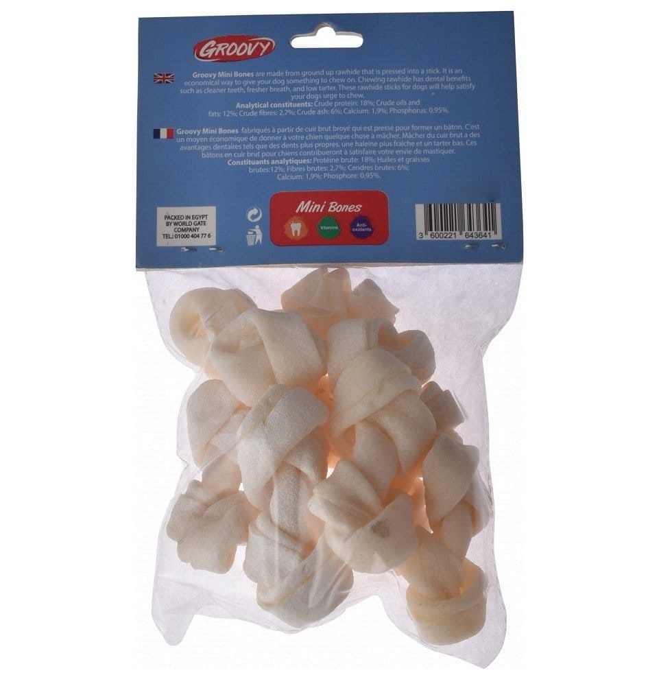 مكافآت الكلاب الرائعة عظام صغيرة معقودة وصف :- عظام Groovy Mini Bones مصنوعة من جلد خام مطحون يتم ضغطه في... Read more