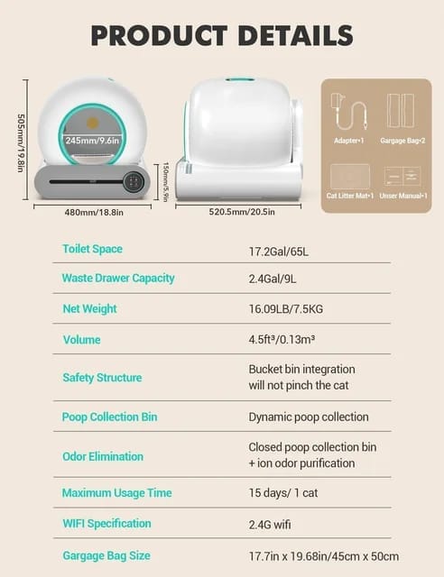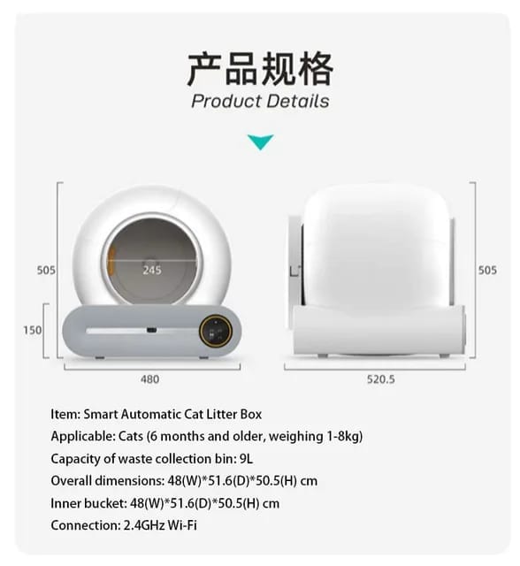 Smart Automatic Cat Litter Box Self Cleaning Wi Fi App Control Multi Cat Friendly