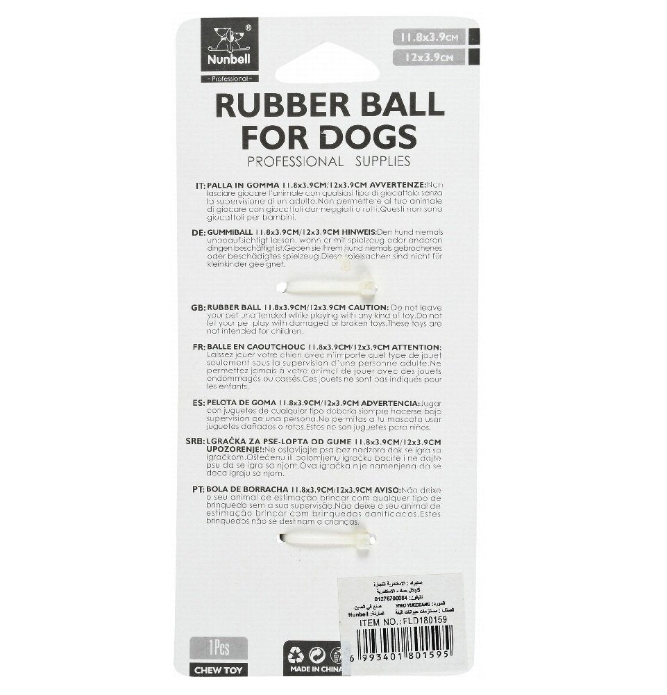 لعبة مضغ للكلاب على شكل كرة مطاطية باللونين الأزرق والأبيض (12 × 3.9 سم)