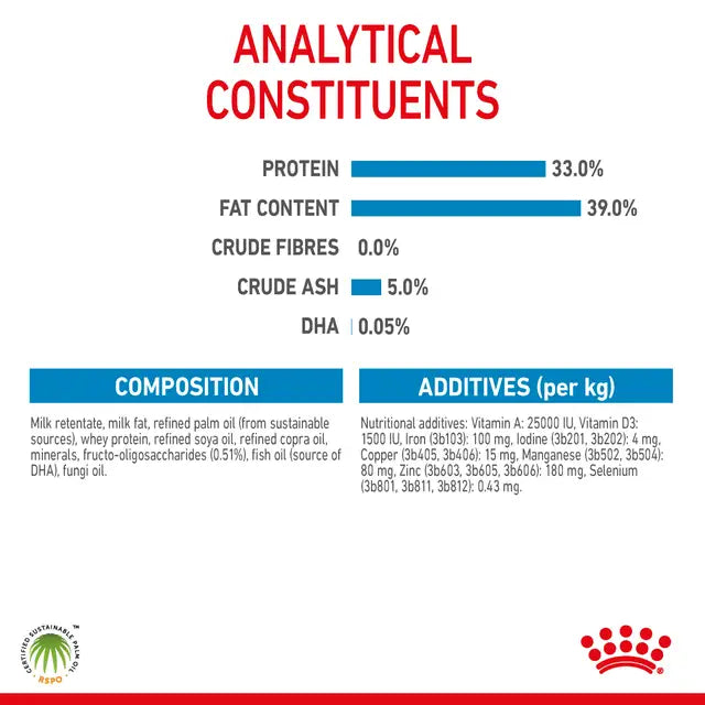 Suitable for first age puppies from birth to weaning, ROYAL CANIN® Babydog Milk is formulated  to feed puppies in case of insufficiency or poor quality of the mother’s milk. Its formulation is as close as possible to the mother’s milk.