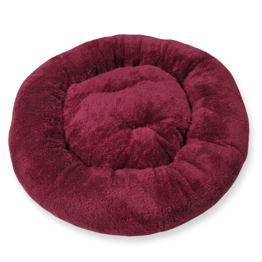 The 60 cm size is ideal for medium-sized cats and dogs, offering ample space to curl up or stretch out. Its round donut shape and raised bolstered edges give your pet gentle head and neck support while maintaining a sense of safety.