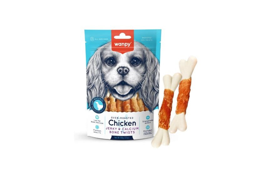 Wanpy Bone Twists Chicken Jerky Strips are delicious, high-quality dog treats made with real chicken meat. Carefully prepared to preserve natural flavor and nutrition, these tasty jerky strips wrapped around bone twists help satisfy your dog’s chewing instinct while providing a rewarding snack. Rich in protein and easy to digest, they are ideal for training, rewarding, or everyday treating.