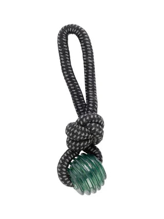 This toy is designed for active dogs and interactive play. It consists of a durable rope in red and black colours, with a ball (rubber or composite) integrated into or attached to the rope. It’s made to satisfy a dog’s chewing, tugging, and fetching instincts.
